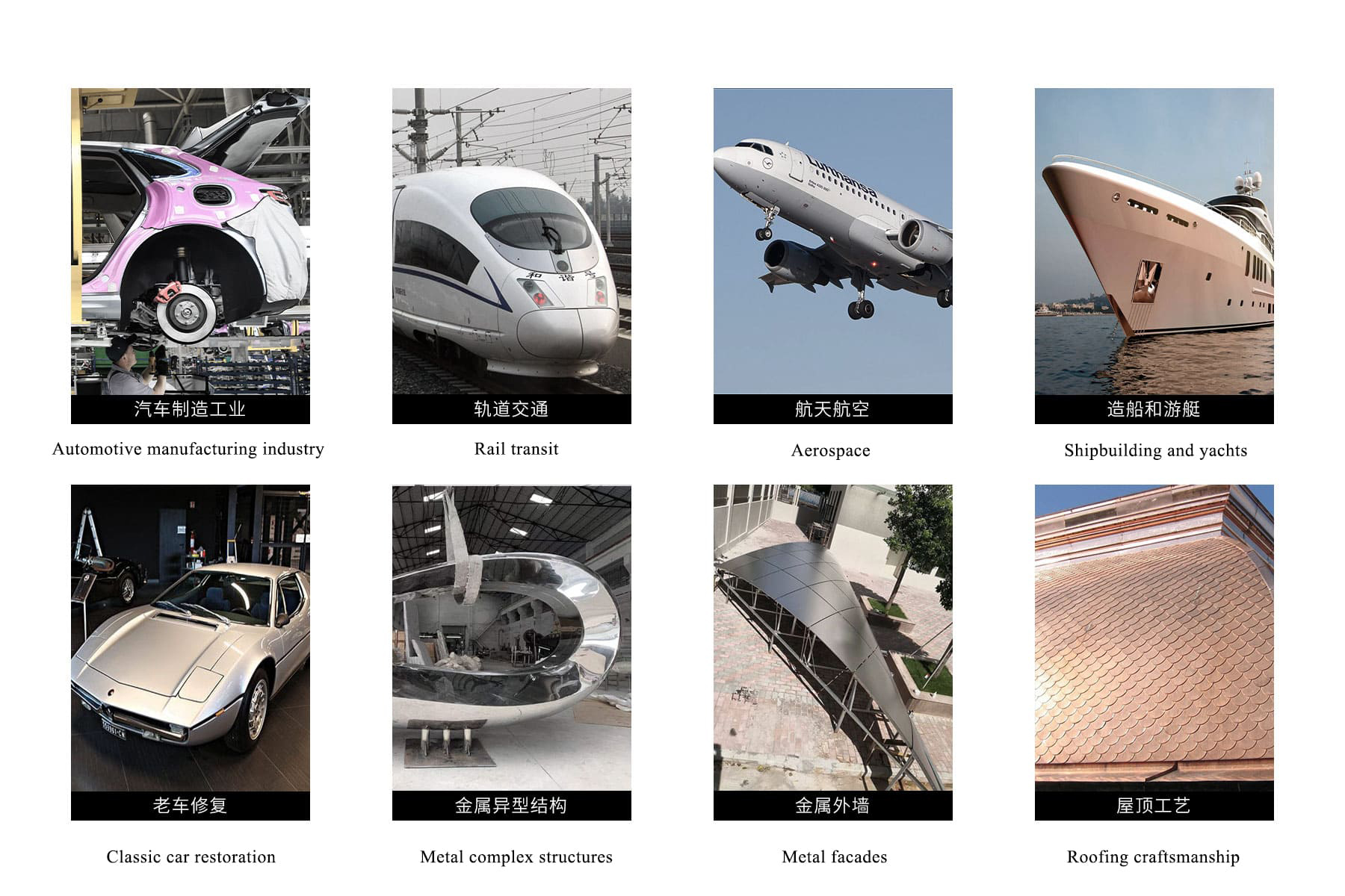 வாகன உற்பத்தி மற்றும் பழுதுபார்ப்பு, கிளாசிக் கார் மறுசீரமைப்பு, கப்பல் கட்டுதல், விண்வெளி, உலோக சிற்பம் மற்றும் உலோகக் கலை உள்ளிட்ட பல்வேறு தொழில்களில் ஜியான்மெங் மெட்டல் சுருங்கும் இயந்திரங்கள் பரவலாகப் பயன்படுத்தப்படுகின்றன. அவற்றின் உயர் துல்லியம் மற்றும் மல்டிஃபங்க்ஸ்னல் ஃபார்மிங் திறன்களுடன், இந்த இயந்திரங்கள் தாள் உலோக மறுசீரமைப்பு மற்றும் உலோக வேலைகளை திறம்பட ஆதரிக்கின்றன, குறிப்பாக விண்டேஜ் கார் மறுசீரமைப்பு மற்றும் கிளாசிக் கார் உடல் வடிவத்திற்கு.